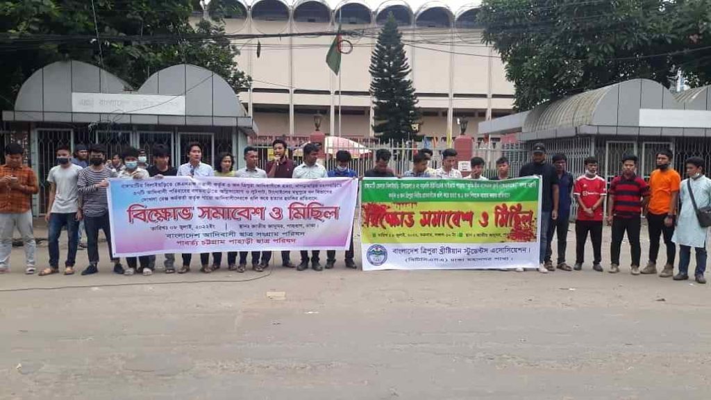 বিক্ষোভ সমাবেশে আরও বক্তব্য দেন বাংলাদেশ ত্রিপুরা খ্রিষ্টান স্টুডেন্টস অ্যাসোসিয়েশনের ঢাকা মহানগর শাখার গৌরব ত্রিপুরা, পার্বত্য চট্টগ্রাম পাহাড়ি ছাত্র পরিষদের ঢাকা মহানগরের রেং ইয়ং ম্রো প্রমুখ।