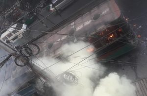 বাংলাদেশের রাজধানী ঢাকার বিভিন্ন স্থানে নয়টি বাসে অগ্নিকাণ্ডের ঘটনা ঘটেছে। ফায়ার সার্ভিস সূত্রে জানা যায়, বৃহস্পতিবার দুপুর দেড়টা থেকে তিনটার মধ্যে কমলাপুর, মতিঝিল, প্রেসক্লাব সংলগ্ন সচিবালয় মোড়, বঙ্গবন্ধু এভিনিউয়ে আওয়ামী লীগের কেন্দ্রীয় কার্যালয়ের সামনে ও শাহবাগের কাটাবন মোড়, তুরাগ এলাকা এবং বংশালের নয়াবাজার এলাকায় এসব ঘটনা ঘটে। ঢাকায় অগ্নিকাণ্ডের এই ঘটনায় রাজনৈতিক অঙ্গনে উত্তেজনা বেড়েছে। পুলিশ ইতোমধ্যে বিএনপির সঙ্গে সংযোগ রয়েছে এমন একজনকে এ ঘটনায় গ্রেপ্তার করেছে।