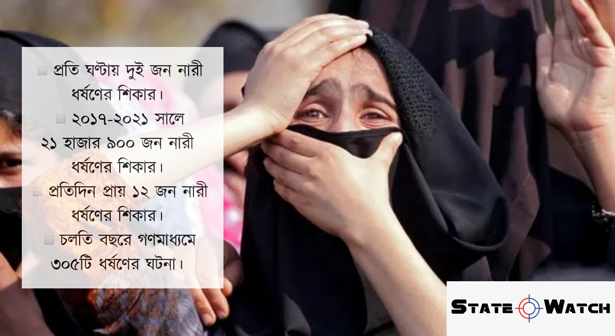 চলতি বছর এখন পর্যন্ত দেশটির গণমাধ্যমে ৩০৫টি ধর্ষণের ঘটনার সংবাদ প্রকাশিত হয়েছে। এর মধ্যে গত মে মাসে ৫৭ জন, জুনে ৯১ জন, জুলাইয়ে ৮৬ জন এবং আগস্টে ৭১ জন নারী ধর্ষিত হয়েছেন।