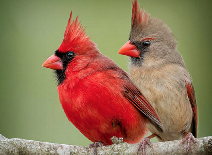 মাঝে মাঝে দুই লিঙ্গধারী কার্ডিনাল পাখিতেও দেখা যায়। এই পাখির একদিকের অর্ধাংশ স্ত্রী পাখির মতো বাদামী-ধূসর পালকে আবৃত থাকে আর বাকি অর্ধাংশ পুরুষ পাখির মতো উজ্জ্বল লাল বর্ণের পালক দ্বারা আবৃত হয়ে থাকে।